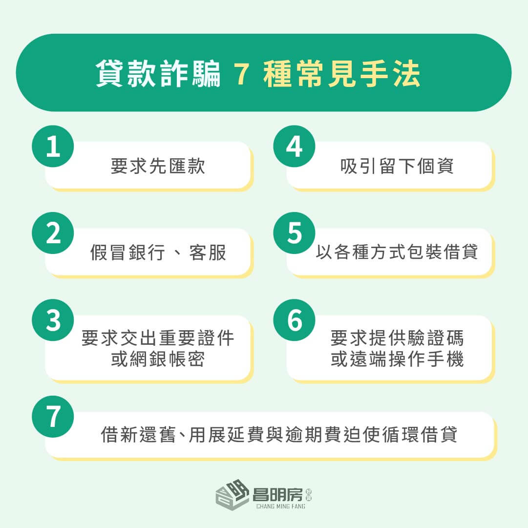 三、貸款詐騙 7 種常見手法(非法)